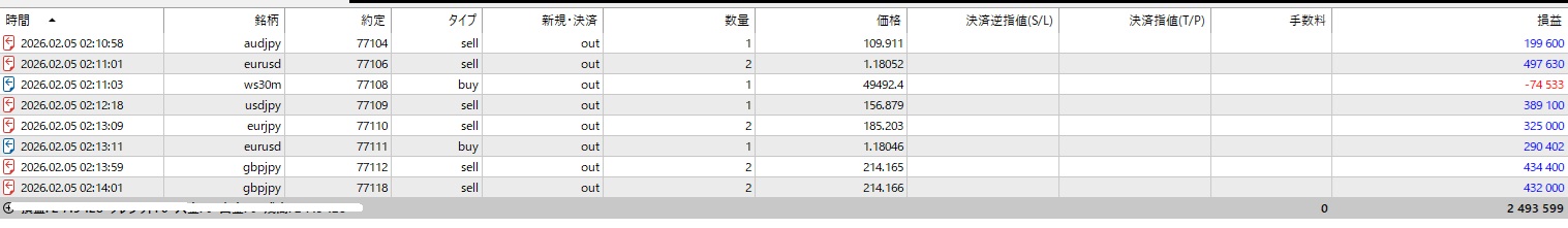 - 2月5日:2,493,599円