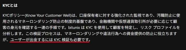 過去にはKYC認証なしで出金できたものの、マネーロンダリング対策強化のためにKYC認証を必須にしたと考えられます。